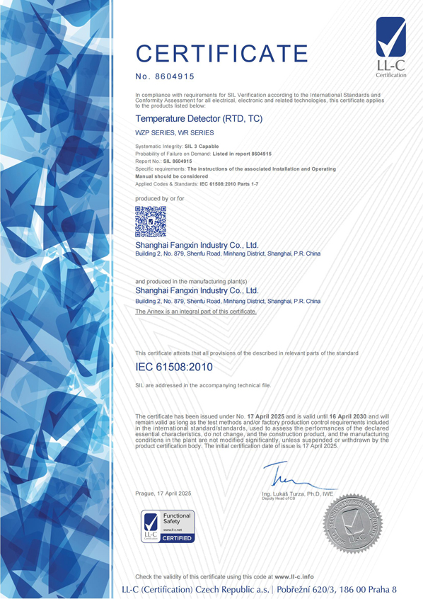 級(jí)精度產(chǎn)品制造計(jì)量許可證的極少數(shù)合法企業(yè)之一。并且率先采用了國(guó)際通用的分度號(hào)色標(biāo),從而使安裝在設(shè)備上的產(chǎn)品的分度號(hào)非常醒目,便于識(shí)別和更換,因此多年來受到熱工維檢人員的贊譽(yù)。